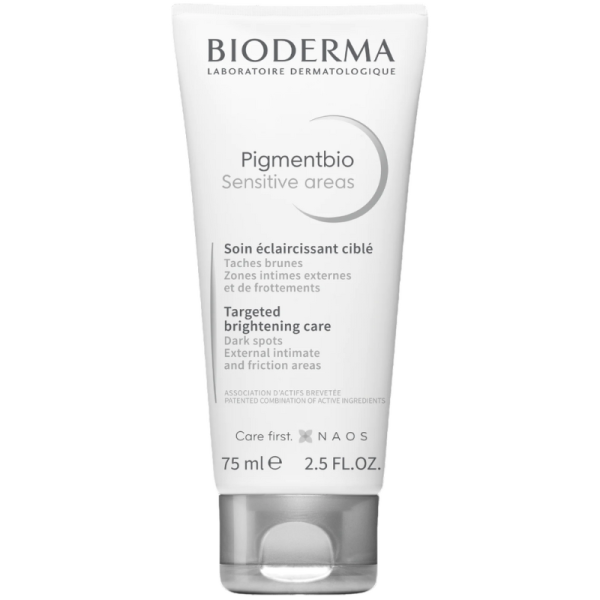 Bioderma Pigmentbio Sensitive Areas is a brightening care that targets mostly the sensitive and friction areas (knees, elbows, underarms, thighs, groin) and external intimate areas. This care brightens and evens out sensitive areas while soothing and moisturizing the skin. It also helps prevent the redness responsible for differences in skin color. The patented combination of active ingredients regulates the biological mechanisms that cause dark spots to form, for brightening effect and optimum prevention.