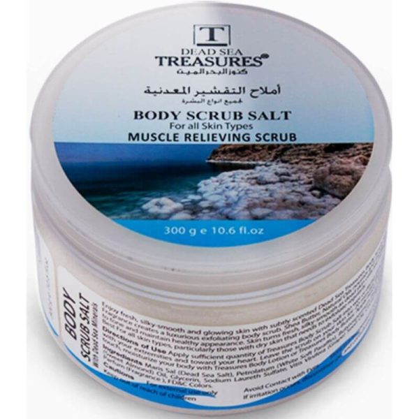 Apply sufficient quantity of Dead Sea Treasures Body Scrub Salt into wet or damp skin, massage gently in a circular motion, starting with your extremities and toward your heart. Leave the scrub on your skin for 20 minutes then rinse off with lukewarm water. For finishing touch, moisturize your body with Treasures Body Lotion or Treasures Body Butter. Apply twice a week.