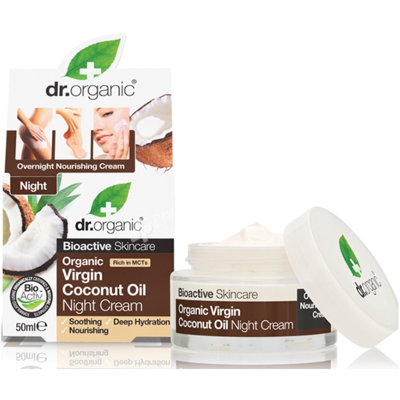 This rich nourishing Organic Virgin Coconut Oil Night Cream combines the hydrating properties of Coconut Oil with a cocktail of organic essential oils and natural extracts to soothe and hydrate the skin. Due to the high level of Medium Chain Triglycerides found in Coconut Oil this deeply moisturising cream balances the skins natural moisture level, leaving the skin feeling fresh and healthy.