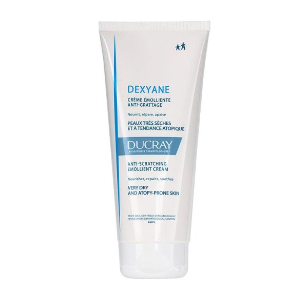 Ducray Dexyane Anti-Scratching Emollient Cream is a daily face and body care for very dry skin prone to atopic eczema. Further this dermatological cream is suitable for the whole family. In fact, it soothes irritation due to its innovative formula, all the while nourishing and repairing the skin. Additionally it contains Ducray innovation “corneotherapy” helps repair the altered skin barrier. Moreover, it ensures perfect balance between hydration and nourishment. Its comforting, non-sticky galenic texture ensures the perfect balance between hydration and nutrition. Therefore, the skin recovers its natural comfort and the feeling of dryness is reduced. In a word, it is essential to hydrate the skin daily with an emollient. Also, this nourishes and repairs skin and soothes itching. An emollient must be applied once a day after cleansing skin. However, apply to the entire body except for inflamed areas (red lesions).