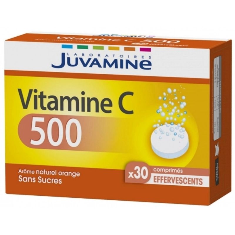 Juvamine Vitamin C 500 30 is a food supplement in form of effervescent tablets. It contains Vitamin C which contributes to reduce fatigue. It participates also to the normal functioning of the immune system. Thus, it allows your organism to defend itself against external aggressions.
