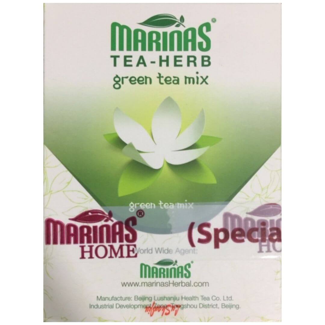 Marinas Tea-Herb contains green tea, oolong tea, lotus leaf, vegetable sponge, gynostemma pentaphyllum.