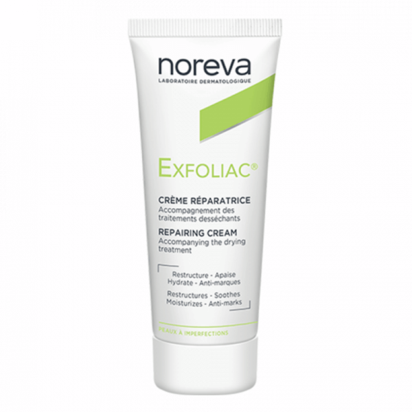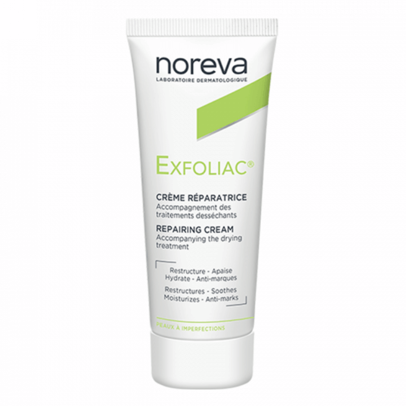Noreva Exfoliac Reconstructive Cream moisturizes and protects dry and irritated by anti-acne treatments skin, soothes it, while making more comfortable.