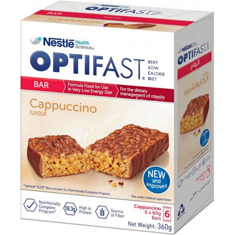 This delicious bar is one of nine products in the Optifast VLCD range and has a fantastic cappuccino flavour. It is part of a nutritionally complete program, is ready to eat and is high in protein and fibre.